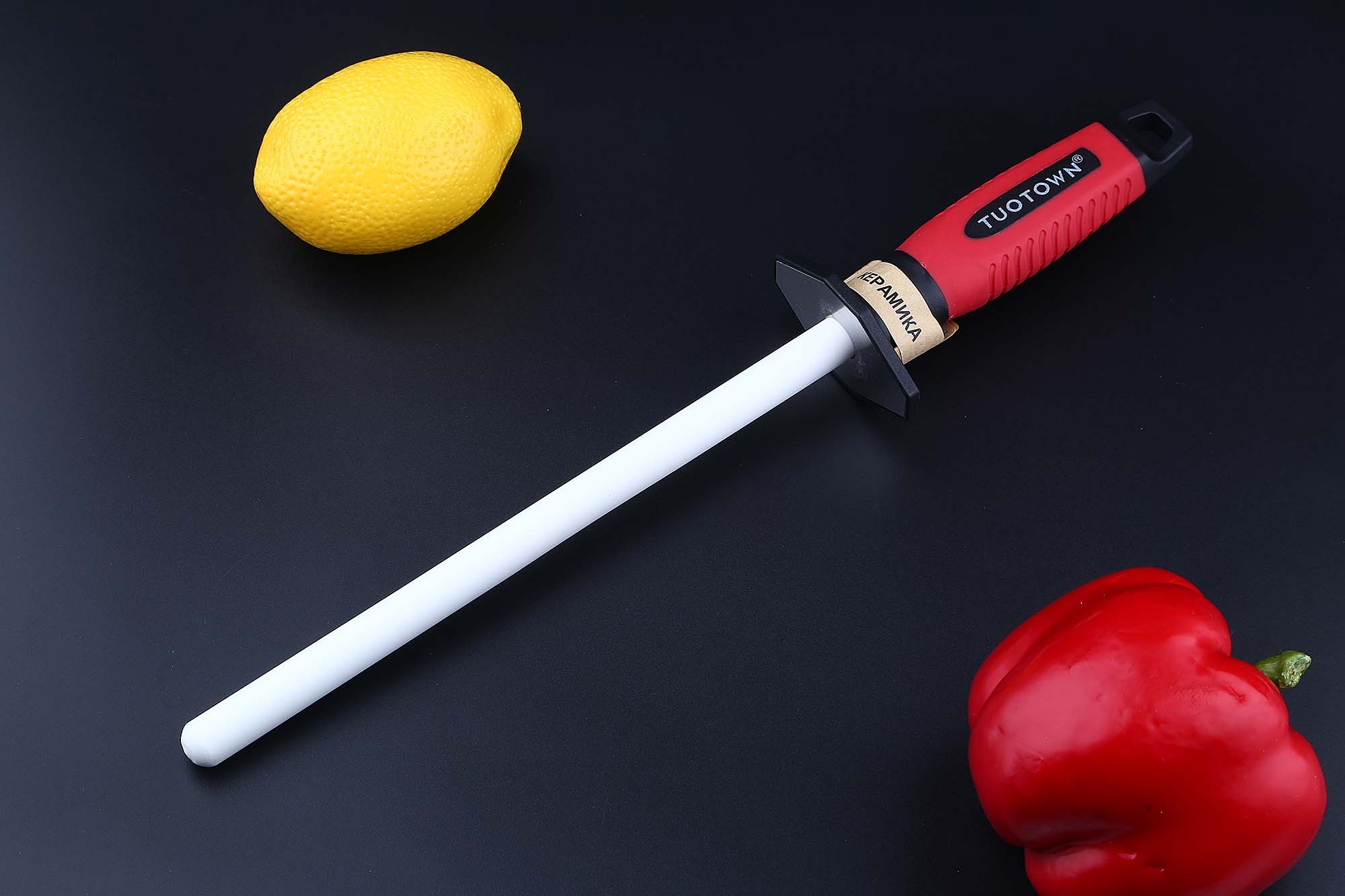 Керамический мусат для правки ножей Tuotown 23 см, круглый, зернистость 1000 Grit, средний (medium), Китай