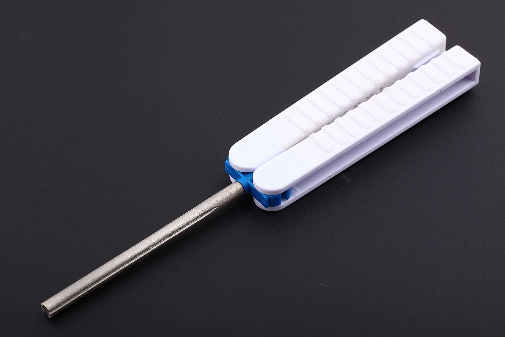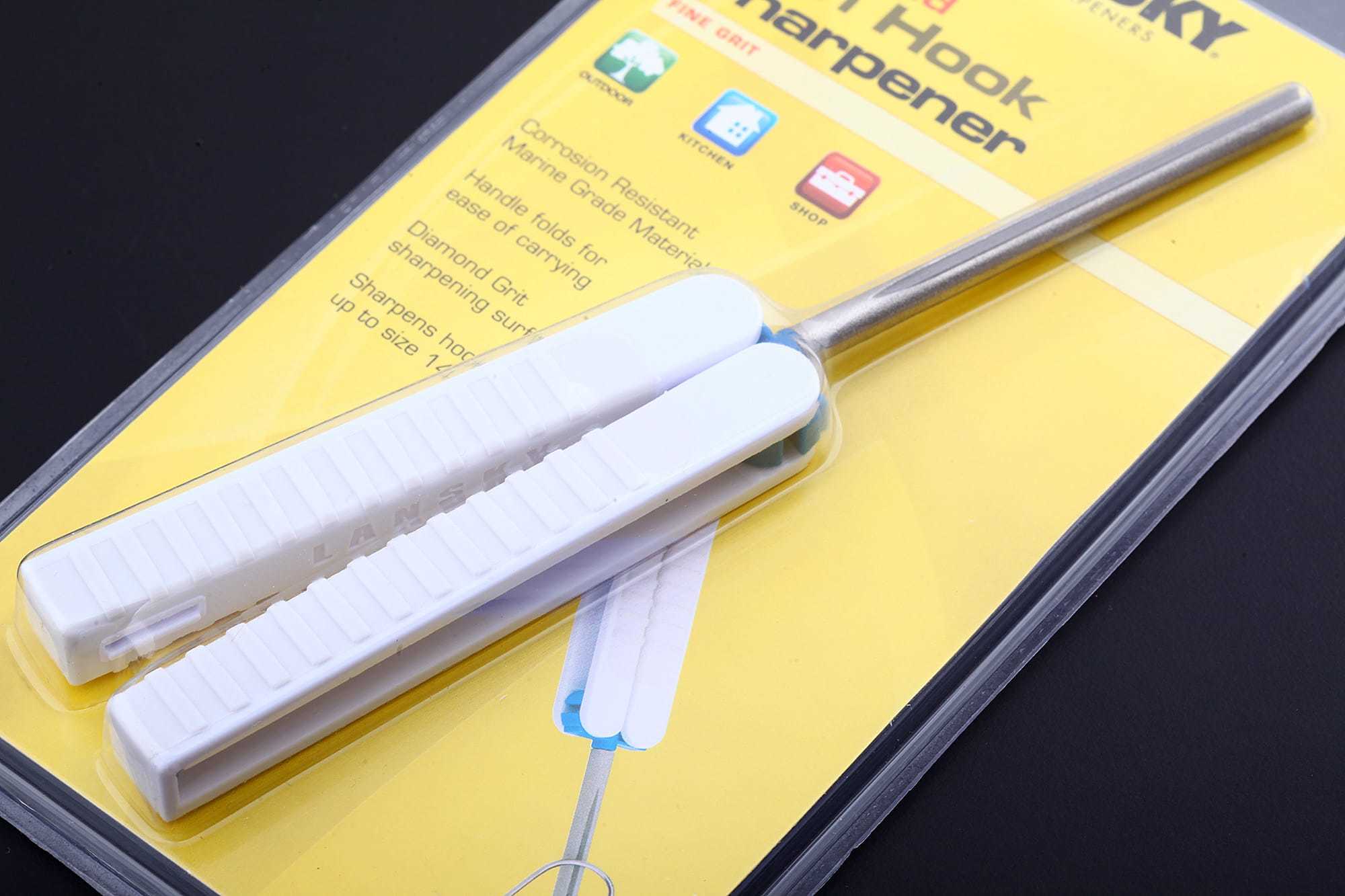 На стержне нанесены три борозды, что позволяет затачивать рыболовные крючки до размера 14/0. Алмазное напыление позволяет затачивать даже самые твердые крючки. Может использоваться как мусат для правки ножей.