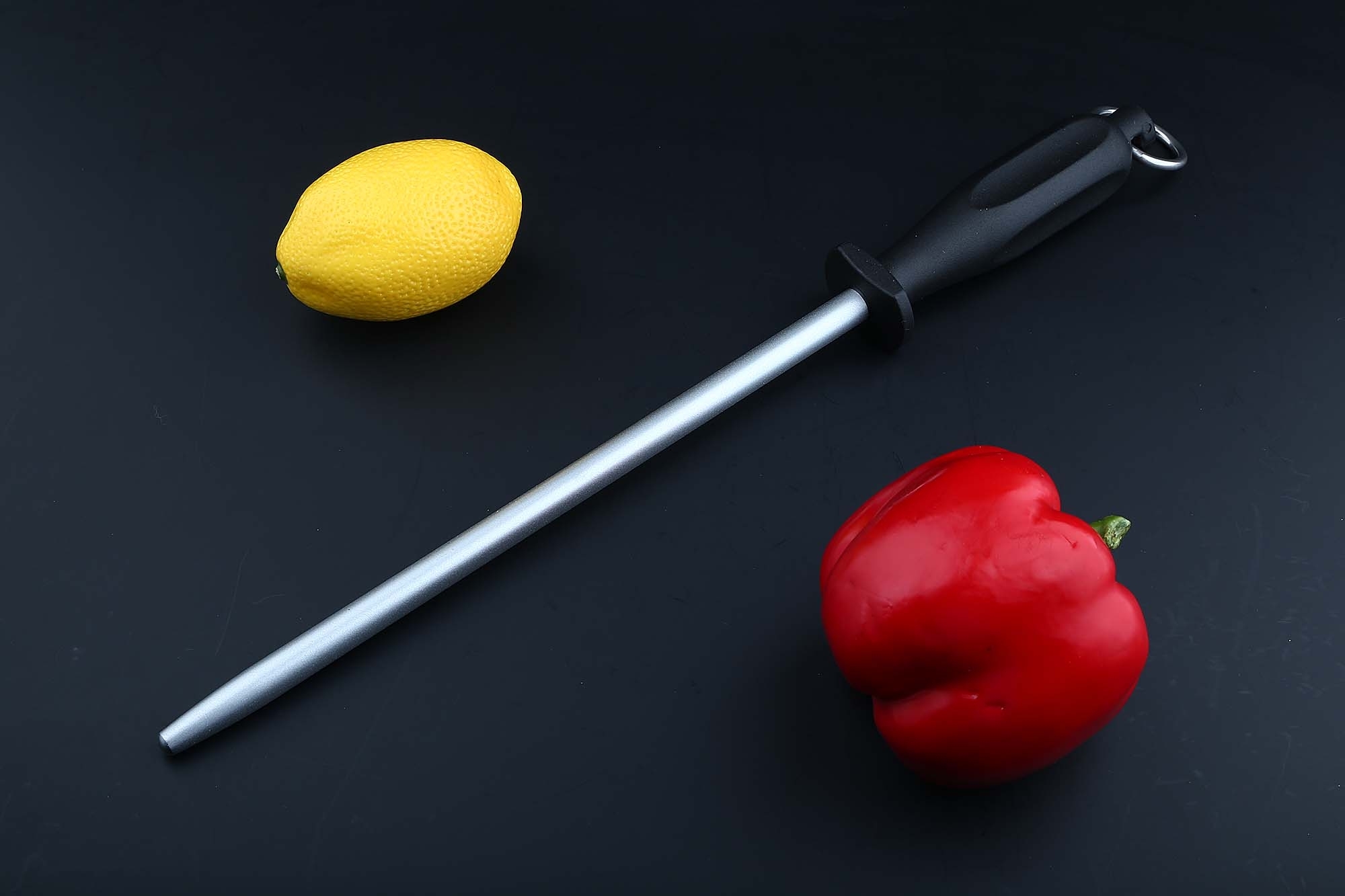 ГлавнаяВсе точилкиСтальной мусат с алмазным напылением для правки ножей Flugel 25 см, круглый, зернистость 1200 Grit, средний (medium), черная рукоять, США