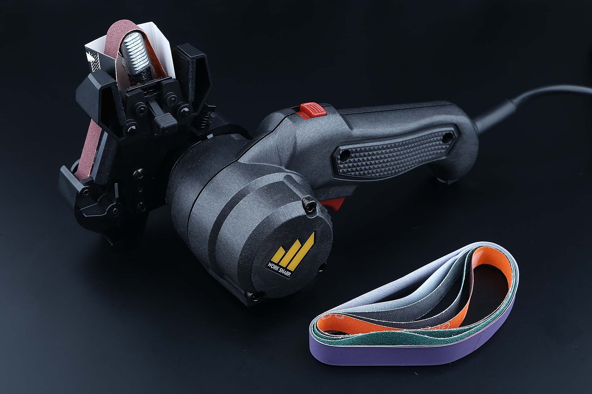 Комбинация регулировки скорости, точной направляющей и гибких абразивных лент позволяет затачивать лезвия до образования бритвенной остроты быстро, легко и комфортно. Точилка Work Sharp Mk.2 имеет три положения заточной кассеты: парковочное, рабочее (для заточки) и режим гриндера. В комплект поставки входят абразивные ленты: